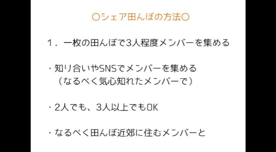 とはいえ、何もわからない状態で地域に飛び込み、稲作を始めるのは心細い面もあります。そんな方は、シェア田んぼもオススメです。10万の機械を買うとしても10人いれば1人1万でいいし、草刈りなど大変な作業も一人では苦行ですが、仲間がいれば話しながら楽しみながらできます。